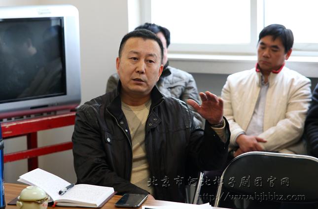 随后王英会发言说到:“这个戏是李二娥老师最具代表性的剧目,这次复排《大刀王怀女》从剧团的传承、人员培养和市场开发这几方面都是非常切实、有效和可行的。《大刀王怀女》行当齐全,文武带打,有较高的艺术性和较强的观赏性,这里面戏曲的程式和绝活,尤其是对我们梆子来说是独一无二的。挖掘传统重在老戏新演,传统戏是我们取之不竭、用之不尽的艺术宝库,但是经典剧目之所以传承,是因为它在不同是时期,有不同的人物和不同的演绎方法,所以经典的传承是从传统剧目这些艺术宝藏里挖掘、继承,然后发扬光大。”他还讲到:“如果说《王春娥》叫以老带新,那么《大刀王怀女》就叫众星捧月,张华这个孩子很用功,尤其是在李二娥老师的教导下,艺术上有了一个很大的进步,这出戏可以说是红花陪绿叶,虽然这个红花还不够红,但年轻人要给他们机会,随着剧目和舞台的实践经验的增加,这朵红花会越来越红。全剧组人员都应该将全部的能力拿出来投入到这部戏当中,为梆子团的艺术生产,为自己的艺术生涯画上浓墨重彩的一笔。”