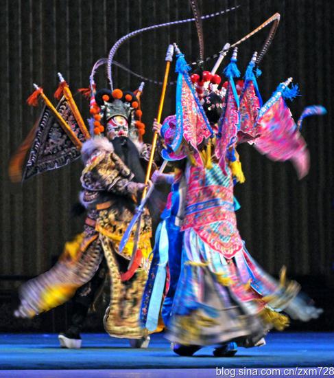 (1)《火烧余洪》展现了刀马旦戏中披靠对打、下高、舞大刀等基本功。
