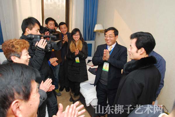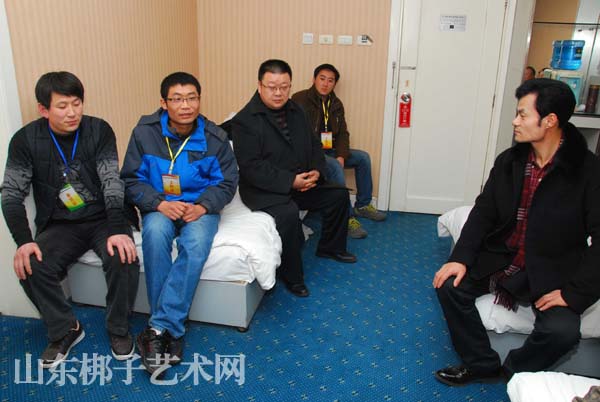 2013年1月26日上午,第八届山东梆子戏迷票友联谊会与会来宾分组召开了讨论会。全体来宾共分16个小组,每个小组10—14人,各设组长一名,由组长组织召开讨论会议。联谊会会长傅海棠与副会长康云柱、王其峰一起到各组进行了走访慰问,并和来宾交流意见、畅叙友情。