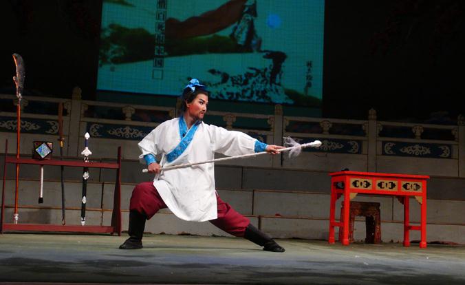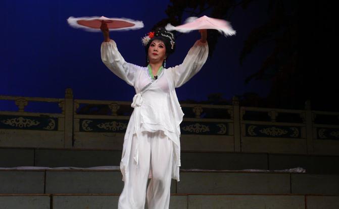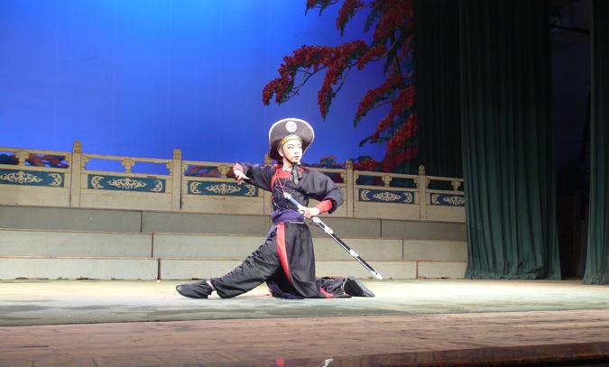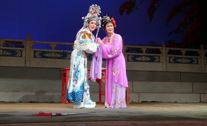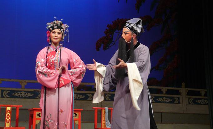晚会上男教师们也纷纷使出看家本领,著名表演艺术家洪妙的学生、汕头潮剧史上第一枚中国小梅花得主的指导老师翁灿龙扮演了女丑行当的狱婆,虽然只是一个配角,但亮点凸现,诙谐幽默。黄友德自编自导自演自制舞美的《精忠报国》独具匠心,有耳目一新的时代气息。罗宗森饰演的宋江从理性和感性上增加了创造角色的原料,髯口、水袖、台步等,一招一式干净利落。戏曲界有名谚“男怕《夜奔》,女怕《思凡》”,刘浩锐挑战《夜奔》,显示了一定的艺术功底。