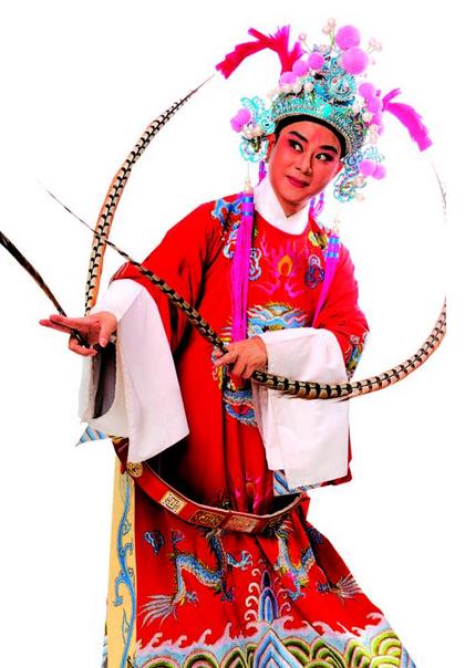 潮剧的武生其实不是很当行,是以文戏、丑戏见长的,解放后,引进京剧等兄弟剧种的武戏,在武功上虽有所表现,但积累的底蕴并不深厚。所以,对于一个青年演员来说,要演武戏,是有不少压力的。可是,压力有时也是动力,挑战可以激发人们的精神。我很欣赏他在《小宴》里的表现。他演的吕布,是那么的英气逼人,风流倜傥,又轻佻飞扬,真是很到位的一个活吕布。