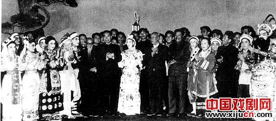 周恩来等观看《辞郎洲》后,与演员合影