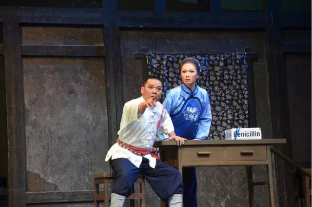 昨晚8时,演出正式开始,简约空灵的舞台、迂回曲折的剧情、生动细腻的表演把在场观众带入到了70多年前揭阳军民狙击日寇侵犯的峥嵘岁月。精彩的剧情不时博得观众阵阵掌声,特别是母亲秋菊为了保护药品,亲手毒死儿子时,在场观众不禁潸然泪下;当搜查药品的敌人被毒死时,观众席里传来阵阵叫好声。悲怆凄切的唱段、起起伏伏的剧情随着演员们的倾情演出,在观众心灵上引起共鸣。“这部剧非常有教育意义,它警醒我们年轻一代要勿忘国耻,珍惜来之不易的幸福生活。”