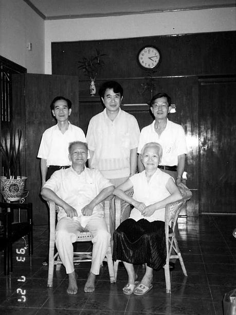 拜会老校长王义炽(前排左,右为王夫人,后排左为作者,中为王宋大,右为余学勤)