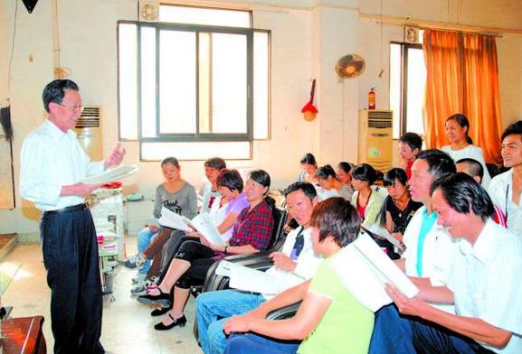 李廷波先生为广东潮剧院演员教唱的场面 陈玉盛 摄