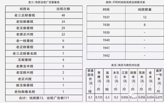 尽管戏价出现的广告并不多,仅在《民国岭东日报》1937年10月1、2、14、15日出现过,但戏价问题的讨论显然极有意思,因为戏价的情况直观地揭示了潮剧的消费情况。在这4天的广告中,无论是否新出台戏曲,一律按“日价对号一角,头等、普通12仙;夜价对号三角,头等、普通一角”标准收费,戏价因表演时间段有所差异,也因座位等次有所差异。若按夜价普通座票价一角计,本月份《民国岭东日报》中张版每份售价二分,即可购买5份。再与1937年10月13日该报新闻报道的《日用品必需品最新价格调查》、《县府布告商民规定零售米价》所提供的物价信息比较,从表五可以看出,普通座位的戏价在当时可以购买到约1.79斤江西米或约1.33斤暹罗一号米,见表五。尽管潮剧广告中只有零星的票价信息,但通过对比分析,可以看出潮剧票价较为适中,戏价的定位应该充分考虑到观众的承受力,尽可能满足观众的消费水平,以期吸引更多的观众进戏院观看潮剧演出。见表五。