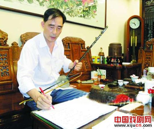 潮剧票友带来新曲段请郑金雄(坐者)记谱。