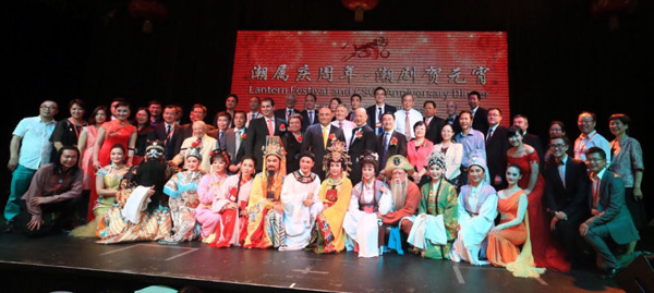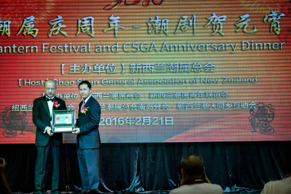 总理John Key因事不克出席,也发来热情洋溢的贺信,并由两美女一帅哥搭档的专业司仪于开幕仪式前宣读。全场以华﹑英﹑潮三语介绍节目,最令乡亲们振奋的是,广东省文化厅潮剧院专程派出着名演员方展荣、张怡凰、詹少君、林初发等前来为乡亲表演了着名潮剧折子戏,精彩剧目包括《京城会》、《金花送郎》、《为君祝贺表衷诚》、《罗成陷阵》、《包公赔情》、《井边会》、《爱歌》、《桃花过渡》、《鸳鸯情缘》以及悦耳潮语歌曲与优雅舞蹈等,瑰丽缤纷戏服加上潮剧特别唱腔,演员们细腻的做手配合传情的眉目,精采演出解尽了喜爱潮剧的乡亲们绵绵的桑梓情怀,也赢得了宾客们阵阵喝彩…