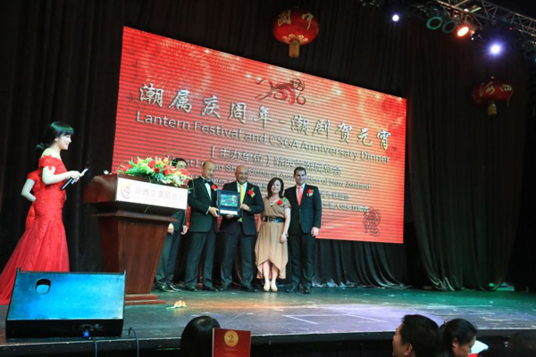 当晚六时,福字大红挥春迎来了数十华洋政要及社团领袖,新西兰潮属会会长张乙坤也神采奕奕与会员家属等约五百名欢聚一堂共庆佳节。酒家内洋溢着节日气氛,潮州锣鼓乐宣天,张灯结綵喜洋洋;几位身穿中国红旗袍的礼仪小姐于入口处笑脸相迎接待来宾。出席宾客包括新西兰民族社区部部长Hon Peseta Sam Lotu-liga、新西兰国家党议员Jami-Lee Ross、华裔国会议员杨健、韩裔国会议员Melissa Lee、工党党魁 Andrew Little、工党主席Nigel Haworth、奥克兰市长Len Brown、中国驻奥克兰领事馆副总领事罗斌辉及湛玉会领事、奥克兰市长候选人(工党议员)Hon.Phil Goff及Victoria Crone;还有远道而来的潮州市副市长余鸿纯、中国广东省潮剧艺术代表团团长林之达等;好个冠盖云集的城中盛会﹗