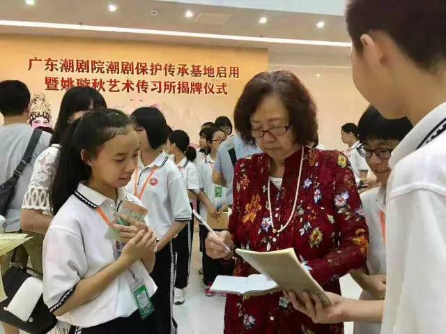 国家及省级非遗潮剧代表性传承人姚璇秋:“我们行内三个团,还有本地票友,都可以来学习,学生喜欢来学,对潮剧有好处。希望大家来弘扬。”