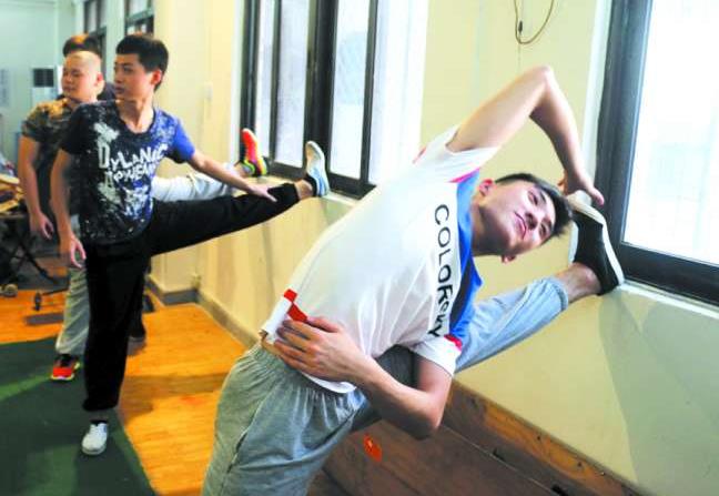 近日,记者在市区利安路的练功厅里看到,十几名汕头市潮剧团的演员正一丝不苟地在练习基本功,走台步、压腿、踢腿……训练场面一派热火朝天。尽管练功厅里安装了空调,但高强度的训练还是让每个演员都汗流浃背。“近期我们全团正在进行强化基本功的训练,一天三场,大家都非常认真、刻苦。”