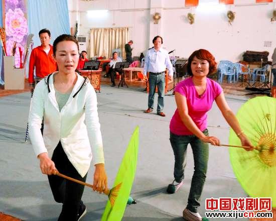 蔡国庆、吕薇在广东潮剧院学潮剧表演。