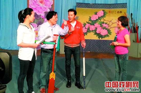 在潮剧艺术博物馆,蔡国庆和吕薇通过参观潮剧服饰、道具、演奏乐器,近距离地感受了潮剧。接下来,可就是唱念做,亲身体验潮剧了。第一次接触潮剧的两位歌唱家在方展荣和吴玉东的示范下,有板有眼地挥起了道具,尽管舞台表演经验丰富,两位歌唱家可不敢怠慢,紧紧盯住两位老师的动作、身段表现和走姿,边学边揣摩,好容易动作像模像样了。可最大的“拦路虎”却是潮剧唱词,这可苦了两位歌唱家,从没有学过潮汕话的他们不仅不懂得意思,连发音也咬不准,他们只好请教老师,一个字一个字地现场“抠”,又边学边唱,真是忙煞了他们。唱词中刚好有“轻松”两字,蔡国庆跟着方展荣拗口地学着,还不忘“幽默”了一把说:“我可一点都不轻松。”吕薇说:“唱段中花旦的唱腔特别丰富,要学挺难的。”两位艺术家真铆上了劲,一直学到了傍晚6点半。