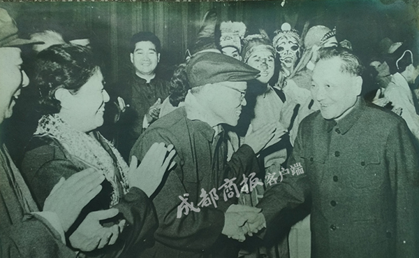 据川剧研究院相关负责人介绍,在川剧界叱咤风云的杨淑英,川剧的启蒙竟然来自于茶馆。“杨淑英老师的家附近有个茶馆,10岁开始她就天天去听,然后跟着学两句,偶尔上台。没想到偶然遇到她后来的恩师,她的老师说,这个女娃嗓子还是好,就把她收了。”14岁拜师,杨淑英随师傅来到了成都,一直唱到了成都市川剧院。1953年,剧院开排《穆桂英》,杨淑英不仅嗓子漂亮,外形也很有英姿飒爽的范儿,便成了这出戏的女主角。她怎么也想不到,正是这出《穆桂英》让小平同志记住了她,川剧研究院撰写的讣告称:“1978年冬天杨淑英老师随团赴京作汇报演出,邓小平同志看戏后赞扬杨老师演的穆桂英很有气魄,英姿飒爽,武打干净利落。”