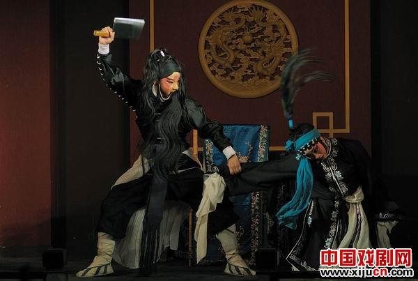 《忠孝图》之一折。曹庄生性耿直,靠耕田打樵度日。其妻焦氏脾气暴躁,时常虐待婆母。曹庄知道后,借杀狗示妻,后得婆母宽恕,一家和好。