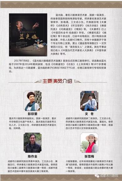 本周六(7月8日)下午两点,戏迷朋友们期待已久的《蓝光临川剧唱腔艺术选集》首发仪式暨弟子专场演出终于要在锦江剧场正式举行了!