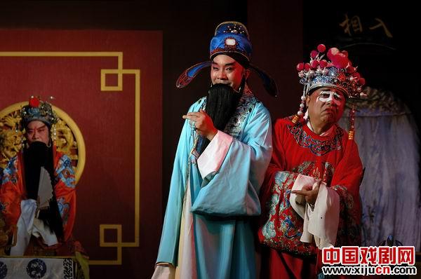 南北朝时,萧道成篡南宋帝位,称齐高帝。萧命其弟萧衍征伐北魏,魏王献金、苗二妃求和,齐王以赐萧衍,阖宫欢庆。萧衍正室郗氏为丞相郗伯玉之女,骄横忌妒,醋海兴波,涉闹宫廷。经皇兄、皇嫂、国太先后劝说,均不依允。萧衍佯装拔剑自刎,郗氏乃暂且息怒。