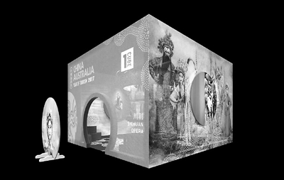 设计师朱明展现了一个大部头设计:川剧主题·空间设计,将川剧的精粹集合到一个移动的川剧馆内。他向记者透露:“我们采取一静衬一动的方式,动静结合,雅俗共赏的方式展现川剧。在视觉审美上,将山水戏剧的水墨感,与三国文化的历史感,色彩装扮的浓郁感进行糅合,追求多样而不繁复。在场馆体验上,我们在观看表演之外,提供了人与人的互动空间。台上唱三国,台下试戏装,画脸谱,让川剧文化自然而然地走进到访者的内心。”
