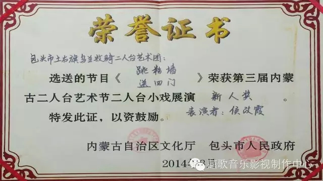 张永青这颗草根新秀多年来一直在默默地守望着土右这片二人台圣洁的净土,用自己辛勤的汗水,把传统二人台这门濒危的乡土艺术传承下去,为土右二人台文化事业尽着自己的一份微薄之力。