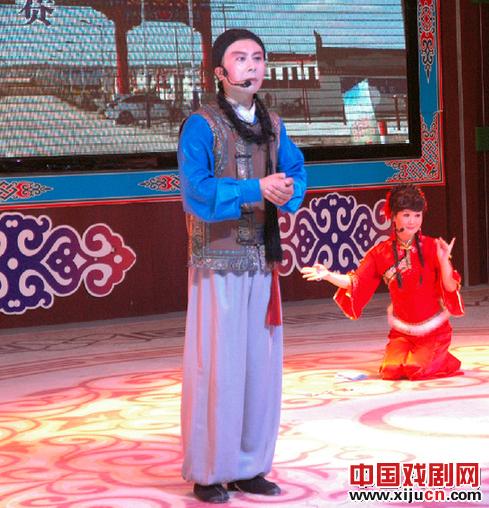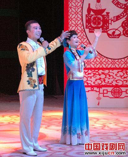 包头市达茂旗二人台演出队的原创表演《夸达茂》,在赞美达茂旗近年来美好变化的同时,演员们巧妙的将二人台戏服换装成蒙古袍,用蒙语唱完了最后一段二人台,台下的观众都被这从未目染的新颖形式所震撼,台下叫好声无数,笑声、叫好声、掌声此起彼伏,掀起了比赛的阵阵高潮。也正是这样一种形式,验证了作为汉蒙艺术融合大潮中产生的地方小戏二人台的地区特色。包头市漫瀚艺术剧院表演的小戏《压糕面》,淋漓精致的展示了一位要过生日压糕面的母亲,看见来帮忙的女儿和她的情郎偷偷亲密,先恼后喜,终于答应他们的婚事,娘儿仨做成了美味的糕面。演母亲的演员浑身是戏,灵气逼人,把个插科打诨泼辣精明的母亲演得鲜明如画,落地生根。台下的观众都哄笑她的泼辣劲儿,这种泼辣劲儿才是民间的劲儿,正是众多的民间团体原汁原味地为二人台保留了最具生命力的草根性,演绎成了极具观赏的群众性文艺文化。