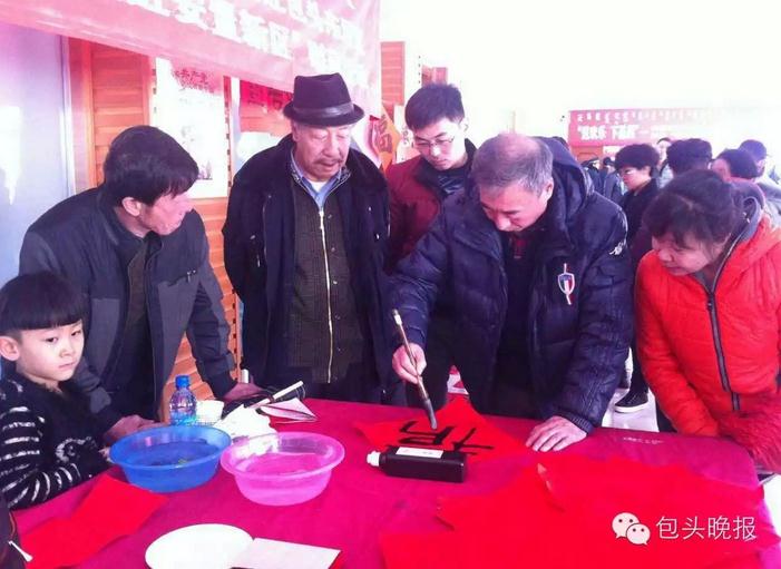 “瞧瞧,武利平也来啦!看他多年轻啊!”3日下午,“送欢乐下基层”内蒙古文联文艺志愿者服务团赴东河区开展“情系北梁走进安置新区”慰问活动。著名二人台表演艺术家武利平等50余位内蒙古文联的艺术家们,走进北梁新区北一社区服务中心,现场写书法、画国画、演节目,还为搬到北梁新区的居民们带去了书籍、慰问金,并将亲笔写下的春联赠送到居民家中。居住在北梁的老百姓也争先拿着自创的歌词去找艺术家谱曲,把自编的节目演给艺术家们看,一整个下午,大家热闹得像过节一样。