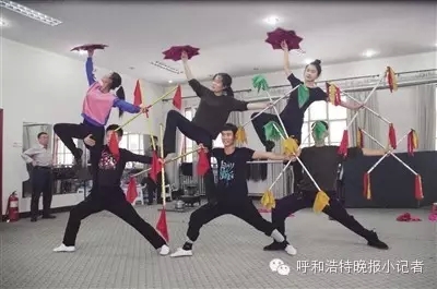 11月28日一大早,雪后的青城处处洁白,格外宁静,呼和浩特民族演艺集团二人台艺术研究剧院的排练厅小火炉烧得正旺,音乐声也已经响起,演员们早早地就开始进行各项基本功的练习。就在这个小小的排练厅里,小记者们和国家级非物质文化遗产——二人台来了一次亲密接触。