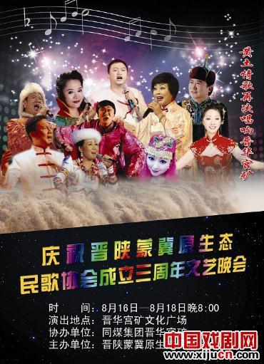 8月16—18日,晋陕蒙冀原生态民歌协会特组织邀请相邻四省区及宁夏的近百名民歌高手同聚山西大同,在同煤集团晋华宫矿区连续三晚放歌交流。本次成立三周年专场慰问演出共分“名家荟萃”、“精品二人台”、“冉冉新星”三个既独立又串联的主题,群星闪耀,各显神通,让晋华宫矿广大员工、家属眼界大开。