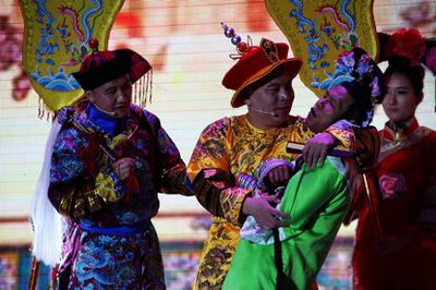 搜狐娱乐10月24日晚,《欢乐小品喜剧汇》在河南省体育馆成功举行。当晚,辽宁民间艺术团著名笑星宋小宝、刘小光、文松、杨冰、赵丹、娇娇、田娃、小飞龙、小超越等组成的喜剧小品豪华阵容为河南观众轮番奉献了喜剧小品《白蛇传》、《英雄》、《过河》、《甄嬛外传》等多个精彩节目。在《甄嬛外传》中,宋小宝男扮女装演甄嬛,让观众爆笑连连。