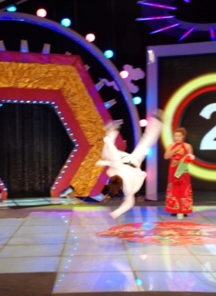 就说这对选手吧,男孩14岁,女孩才13岁,不过这一上台就有模有样的那叫一个范儿。人家可不是光上来装装样子的,你看这手绢转的风生水起那是真功夫。
