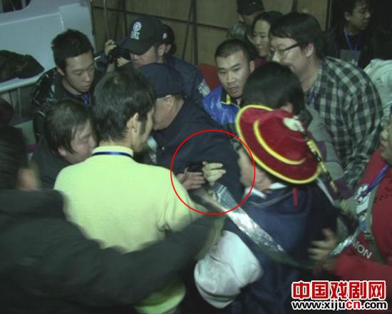 在新作《相亲2》联排结束后,赵本山在工作人员的簇拥下准备从后台直接离开辽宁大剧院,而在后台通往电梯的过程中遭到了两名热情粉丝的熊抱,在与工作人员僵持了半分钟后才将现场控制,随后赵本山迅速离开了现场。