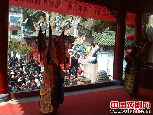 到了两合崖景区,也无暇观景,顺着人流而进,速寻戏楼。凭本人多年经验,只要听到胡琴锣鼓,循声而求,很快就可搜到目标地。戏台下场地不大,观众十有八九皆为中老年;古朴的戏楼上,几位老人粉墨登场,一声声亲切的汉腔汉调,一曲曲西皮二黄,吟唱出陕南的柔和婉转。从台下远远地看到,罗老师正在投入地拉琴,也就没好意思贸然前去打扰,还是等戏结束了再上台吧。虽然和罗老师网上神交已久,却一直还未曾谋面。