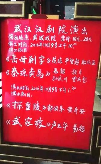 湖北地方戏,看过黄梅戏、汉剧、楚剧,虽都是管孔窥豹、浅尝辄止,但俺更偏好于皮黄腔汉剧。黄梅戏总感觉像是唱民歌!而楚剧实在是太难了!太难了!远不是我所能理解、学习、掌控的。连续十场楚剧看下来,依然找不着板眼、听不出好坏,依旧连鼓掌叫好都找不到地儿。 (“武汉戏码”转发征得原作者同意)