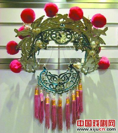 刘立的展品里还有几件做工讲究的手工“盔头”,汉剧称为“文堂”。虽然年份已久,这些“文堂”依然色泽鲜艳,所镶珠子仍闪烁着珍珠般的光芒。刘立介绍说,这些珠子以糯米粉调和银汁制成,是手工艺人一粒粒用嘴吹出来的,现在盔头上的珠子大多是塑料制品。