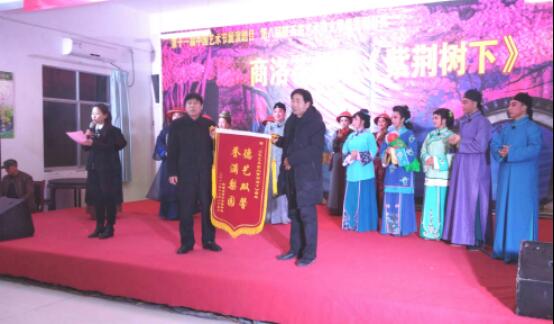 12月23日-25日,按照陕西省文化和旅游厅、陕西省财政厅的统一安排,商洛山花艺术团携商洛花鼓戏《紫荆树下》剧组,先后深入商洛市商州区吴庄中学、板桥中学、大荆中学、秦韵学校、商丹高新中学等多所学校,积极开展2018年惠民演出“地方戏曲进校园”活动,场均观众人数达500人以上,圆满完成了演出任务。商丹高新中学赠送《紫荆树下》剧组锦旗一面,称赞商洛山花艺术团“德艺双馨誉满梨园”。