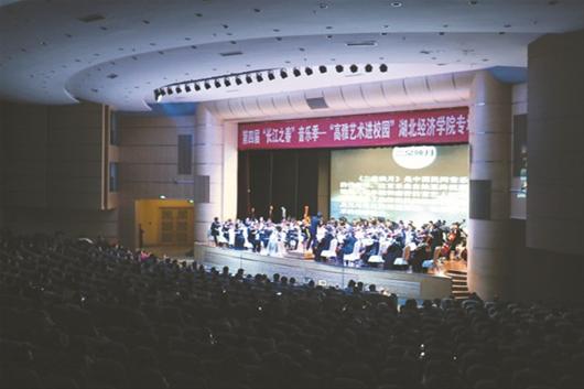 出。音乐会以一曲宏大而欢快的《庆典序曲》拉开帷幕,此曲是由武汉音乐学院管弦系主任赵曦教授应邀为母校60周年校庆而作,全曲抑扬顿挫、慷慨激昂。获得威尔第国际声乐比赛亚太区银奖的青年教师刘刚,满怀深情地独唱了《为你歌唱》。经典的《二泉映月》,旋律委婉流畅、意境深邃,流露出如泣如诉、如悲似怒的情调。乐团还演奏了《康康舞曲》、《卡门序曲》、《卡门组曲》等作品。