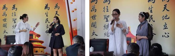 课后,诚明书院执行院长陈德云代表书院向大家致辞。各位热爱黄梅戏的朋友们都是诚明书院的家人,诚明书院也将成立“诚明中华戏曲大学堂”。陈老师表示书院将会成为龙宝玲老师的黄梅戏教学基地之一,未来几个星期龙老师都会在书院举办课程。用艺术形式来传承中华优秀传统文化,也是书院弘扬传统文化的基本理念。书院也因此创作了《一生报答》、《先师颂》等歌曲,弘扬孝亲尊师、敦伦尽分的主旋律。