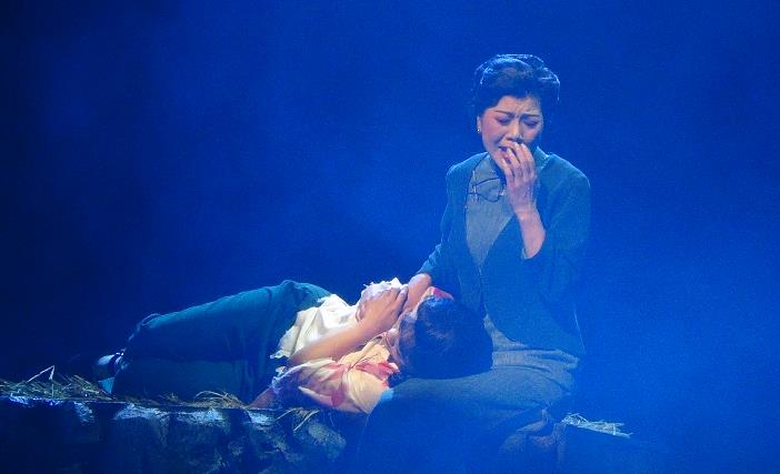 好作品要“磨”。熟悉“长宁”的观众一定看出《青山吟》源于2011年的《苏娘》。当年为了纪念建党90周年,剧团力推该戏,“苏娘”更是沪剧表演艺术家陈甦萍所塑造的不同于以往母亲形象的人物。从《苏娘》到《青山吟》,并非简单的修改,也并非一味的颠覆,而是从剧情发展的合理性、人物角色的完美性等方面进行“重新布局”,从中看出, “长宁”对于新戏创作的严谨态度,对于新戏打磨的精品意识。于是,《青山吟》的剧情推进节奏明显加快,枝蔓情节通过多种方式省略,适应了现代剧场艺术的呈现态势;大主题小角度切入,《青山吟》不同于以往战争戏以剧情的奇峰迭起而制胜,而是把国共内战作为时代背景,始终围绕“情与仇”而展开人物冲突,给予戏曲发挥的最大空间,情人恋、母女爱、战友情交织一起,似萦绕青山的烟雾,或缠绵,或激昂,或悲切,唯美到心碎……