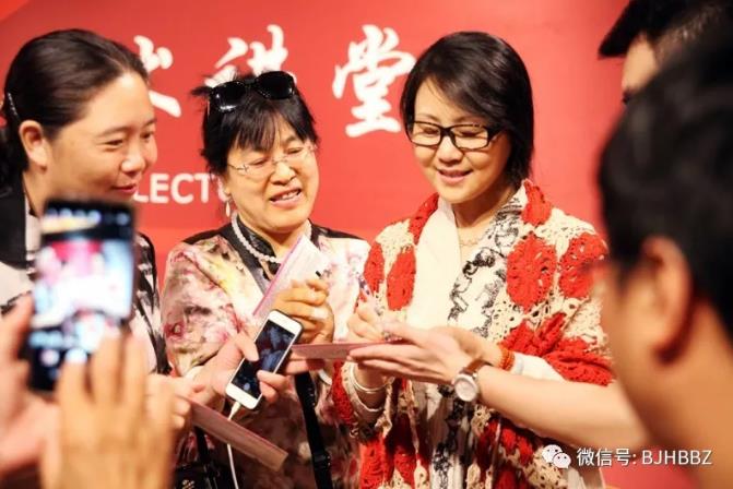 讲座从头至尾都洋溢着热烈的气氛。讲座中王洪玲首先为观众讲解了河北梆子的艺术特点,并通过介绍河北梆子第一代女伶刘喜奎先生的传奇经历,向观众讲述剧团的艺术传承故事,以此拉开讲座的序幕。当观众听完刘喜奎先生传奇的经历后都从心底里非常佩服她,为了能使观众更进一步了解刘喜奎先生的伶人气节,王洪玲即兴表演了一段《北国佳人》中刘喜奎的核心唱段“优伶颂”之前的经典念白,现场观众掌声雷动。
