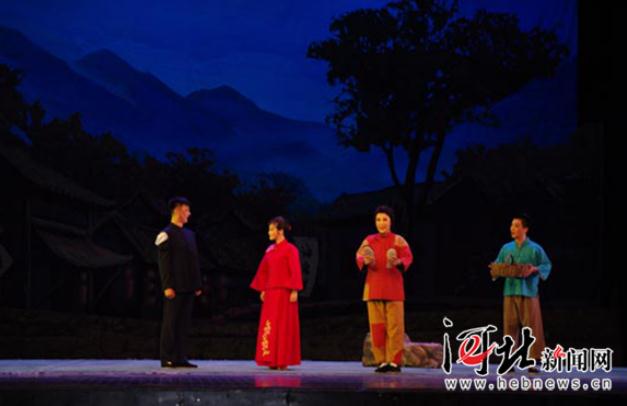 6月5日晚,河北省河北梆子剧院“燕赵喜贺添双梅”首场汇报演出中,许荷英(右二)再次唱响《子弟兵的母亲》。