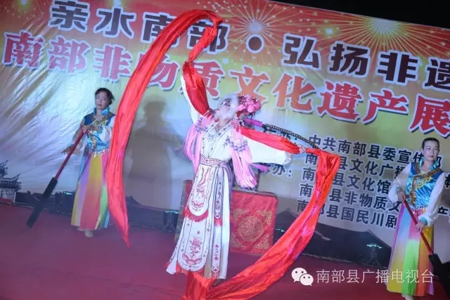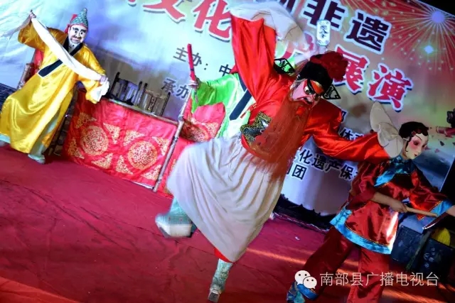 10月3日晚上,由南部县委宣传部、县文广体局主办,县文化馆、县非物质文化遗产保护中心、县国民川剧团承办的“南部县非物质文化遗产展演”由县国民川剧团在县城柳林广场公益演出。