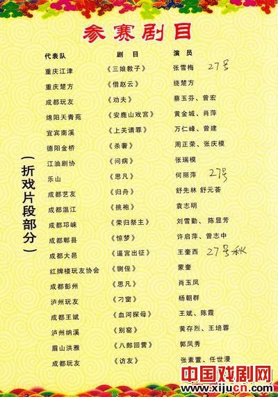 今天到成都市文化宫获悉最新消息。中国首届职工川剧邀请赛于2011.4.26----28在成都市文化宫举办。先将有关资料披露于下。