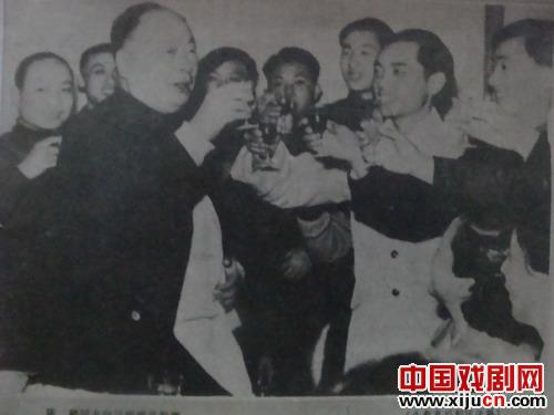 陈毅元帅举杯祝贺四川省川剧赴京演出团演出成功,右1为李良明