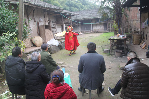 为了让贫困户温暖越冬,愉快迎新年,12月19日下午,遂宁市川剧团领导班子刘德君、刘世虎、徐旭、方勇一行来到联系点贫困户——射洪县双溪乡七村六组李华俊之家,了解了他的生产生活现状,提出了脱贫建议,为他送去了御寒物品和米、面、油、肉等日常生活必需品以及有遂宁市川剧团5个参加四川省第三届青年川剧演员决赛的光碟一套。遂宁市川剧团的优秀青年演员陈胜在李华俊家的院坝里为他和双溪乡九龙村第一书记、妇女主任邱雷英表演了川剧绝技《变脸》,得到了他们,尤其是李华俊的欢迎。李华俊说:“能在自己家的院坝里看到这样高水平的演出,还是第一次,谢谢啦!”