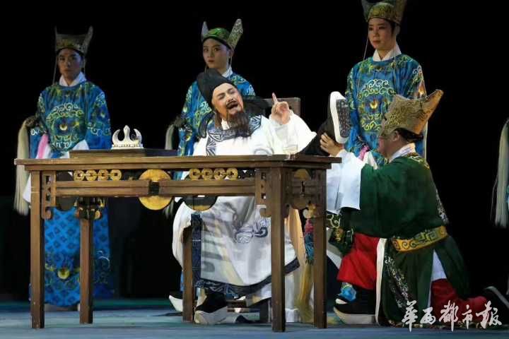“川剧独具巴蜀魅力,剧目的创排过程也可将地域民族的血脉潜移默化,沉淀为学生成长的基因,对学生未来职业发展产生深远影响。”四川艺术职业学院院长陈智林接受华西都市报-封面新闻记者采访时表示,川剧《诗酒太白》是继排演川剧《望娘滩》、话剧《毒殇》、川剧《秦香莲》后,学院又一部“学、创、演、赛”的作品。“这次演职人员有180多位,学校各学科的学生有有参与,包括舞美、服装、音乐、川剧等专业的学生。将课堂教学、艺术创作、演出实践融合,是对‘以戏带功、以功促戏’传统教学方法的继承。”