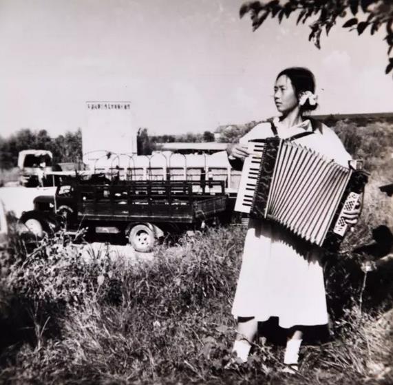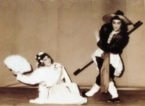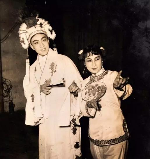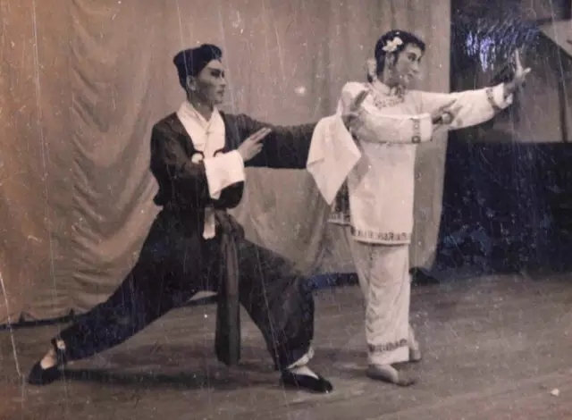 北大1956年,徐棻和张羽军演出湖南花鼓戏《刘海砍樵》。