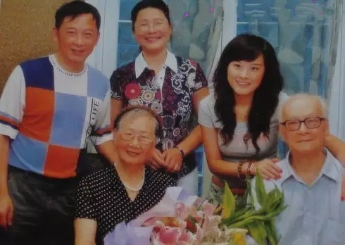 2009年徐棻76岁生日。身旁是老伴张羽军。后排左起:儿子张徐、儿媳于晶晶、孙女张好。