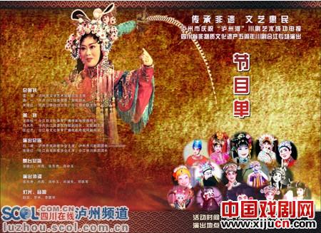为传承弘扬这一艺术精髓,在“泸州河”川剧艺术成功申报四川省非物质遗产五周年到来之际,合江县文化部门精心策划,积极组织,联合泸州市文联、合江县委宣传部,请来林昌亿、黄胜宣、毛世君、周绍修等一批国家二、三级演员。演出“金声玉振”、“梨园长歌”(川剧绝活、变脸—吐火)、“柜中缘”、“锦绣合江梨园春”、“御河桥”等优秀剧目。将古老文化做成普惠大餐免费奉献给市民。消息一经发出,市民便争相讯票。笔者采访离开时,合江川剧团相关负责人正忙着赶制第二批门票。