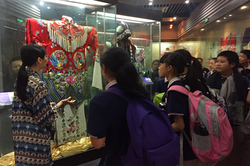 学生充满好奇的欣赏戏曲服饰。(图片来源:渝中区文明办)