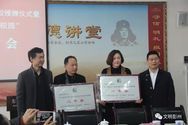 为四川省第二届中小学川剧普习展演中获得一等奖的西郊小学《红色娘子军》、二等奖的隆丰小学《我是川剧小戏迷》颁奖