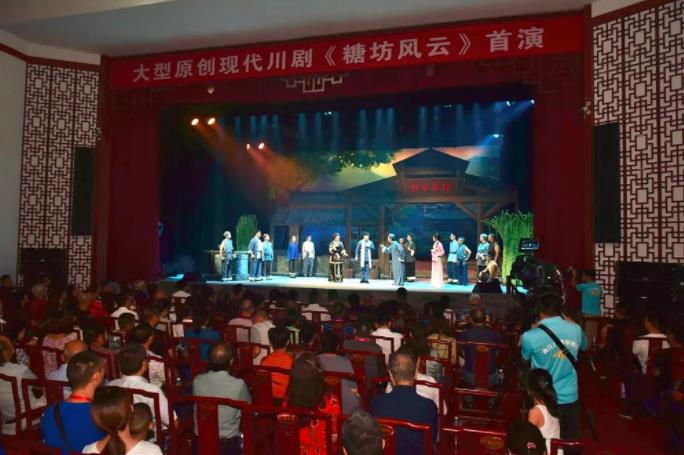 9月2日,大型原创现代川剧《糖坊风云》首演在内江剧场拉开帷幕,我市优秀川剧演员肖云斌、陶红等人,为观众奉上了一场甜城儿女守卫家国的故事盛宴,强大的阵容、紧凑的剧情使得该剧人气火爆,首演当天座无虚席,演出后反响热烈,引发各方好评。
